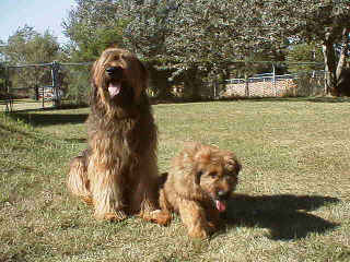 Es war wieder soweit! Am 29.Oktober stieg ich in den Flieger nach Los Angeles. Nach sehr langem Flug, der aber kein Problem für mich war, Susanne erzählte mir ja was mich dort erwartet, erreichte ich Kalifornien. Dort ist noch richtig Sommer und ich verbringe meine Tage am Strand und mit meinem neuen Hobby: HERDING! Auf unserer Kalifornien Seite könnt Ihr mich in Aktion bewundern! Nachdem mein Besuch erfolgreich war, hoffen wir alle, daß Melodie trächtig ist und freuen uns auf meine Milleniumswelpen!!! Melodies Welpen sind da! Am 4.Jänner bekam sie 2 fauve Buben, alle gesund, wohlauf und natürlich sehr schön! Kommendes Wochenende werde ich meine neue Braut kennenlernen, sie kommt aus der Schweiz und ich freue mich schon sehr auf sie! Auch Djill kommt bald wieder zu uns, in einem Monat ist es soweit - Juchhuu!!! Auf Pat`s Seite könnt Ihr die ersten Fotos der "Zwillinge", also Melodies und meiner Kinder, sehen!! Am 26. und 27. 2.2000 kam Chanou, eigentlich heißt sie mit vollem Namen " Xanou de la Cruche d`Argile" zu mir und wir feierten Hochzeit. Ich muß sagen, sie ist wirklich ein ganz liebes und tolles Mädchen und wir freuen uns schon auf unseren Nachwuchs. Dieser wird Ende April in der Nähe von Frankfurt bei Tina und Volker, Chanous Menschen, erwartet. Ich werde Euch selbstverständlich mit Fotos und Berichten am Laufenden halten!!! Im April gibt es in der Zeitschrift "WUFF" ein Rasseportrait vom Briard, und wen könnt ihr auf dem Mittelposter bewundern? - mich natürlich, mit Surfbrett im Wasser. Aber es gibt auch noch andere Fotos von mir und meinen Kindern in diesem Portrait - also auf keinen Fall verpassen!!!!! So, Susannes und Martins Nachwuchs ist bereits geboren!!!! Es ist ein Mädchen namens Hanna Lea und ich kann Euch sagen, ich bin im Augenblick sehr beschäftigt! Babysitten, Ausstellungen besuchen, ich habe in Graz übrigens wieder gewonnen und wurde mit V1 bewertet, Briardbräute beglücken.... Djill war bereits beim Ultraschall, und sie ist sicher trächtig!!! Wir alle freuen uns schon sehr, daß sie wieder zu uns kommt, und wir erwarten unsere Kinder, den E- Wurf von Susanne und Martin, Anfang Juni!