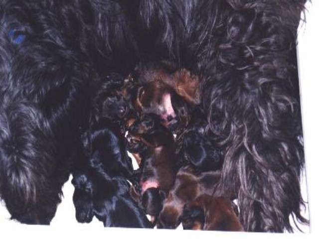 Am 11. und 12. Mai feierte ich wieder mal Hochzeit! Diesmal mit einem fauven Mädchen aus der Schweiz: Jaspis Bun-Pro kam mich besuchen, und nun wartet man auch in der Schweiz auf Nachwuchs von mir!!!! Djill bekam am 7. Juni 8 tolle Welpen von mir! 3 Mädchen und 5 Buben, 4x schwarz und 4x fauve! Alles ist gut gegangen, und ich hatte 8 Wochen Arbeit!! Die ganze Rasselbande wollte mit mir spielen, mein Futter klauen, mein Spielzeug zu ihrem erklären - da war eine Menge Erziehungsarbeit zu leisten! Susanne und Martin haben dann auch noch einen von diesen Quälgeistern behalten!! Emanuelle lebt jetzt mit uns - sie war bei weitem die schlimmste von allen, und ich fürchte, mit ihr habe ich noch eine ganze Weile zu tun!! In der Schweiz gebar Jaspis 9 Welpen, alle fauve! Leider war ein Kaiserschnitt nötig, aber es geht allen hervorragend, und es haben auch schon alle ein neues Zuhause! Wenn ich Glück habe, darf ich im Februar nochmals Lolo heiraten! Susanne wollte mit ihr nach Belgien fahren, aber da einige der angemeldeten zukünftigen Welpenbesitzer soooo gerne Kinder von mir hätten, und dies Susanne auch immer wieder wissen lassen, stehen meine Chancen gar nicht schlecht! Ihr könnt mich unter montventoux@briards.at erreichen! Diese Seite wurde zuletzt am 23.04.03 aktualisiert. |