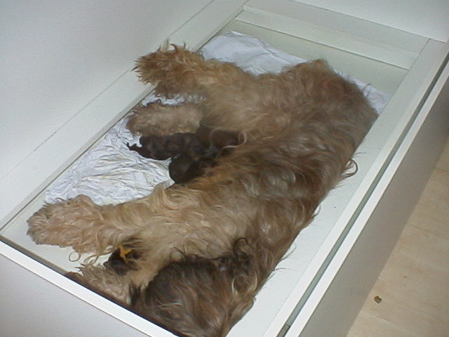 In black born grey puppies from Xia du Coeur poilu and CH. Mickel Angelo de Lacabru! And it is sure, that Xia is pregnant and will have a lot of puppies!